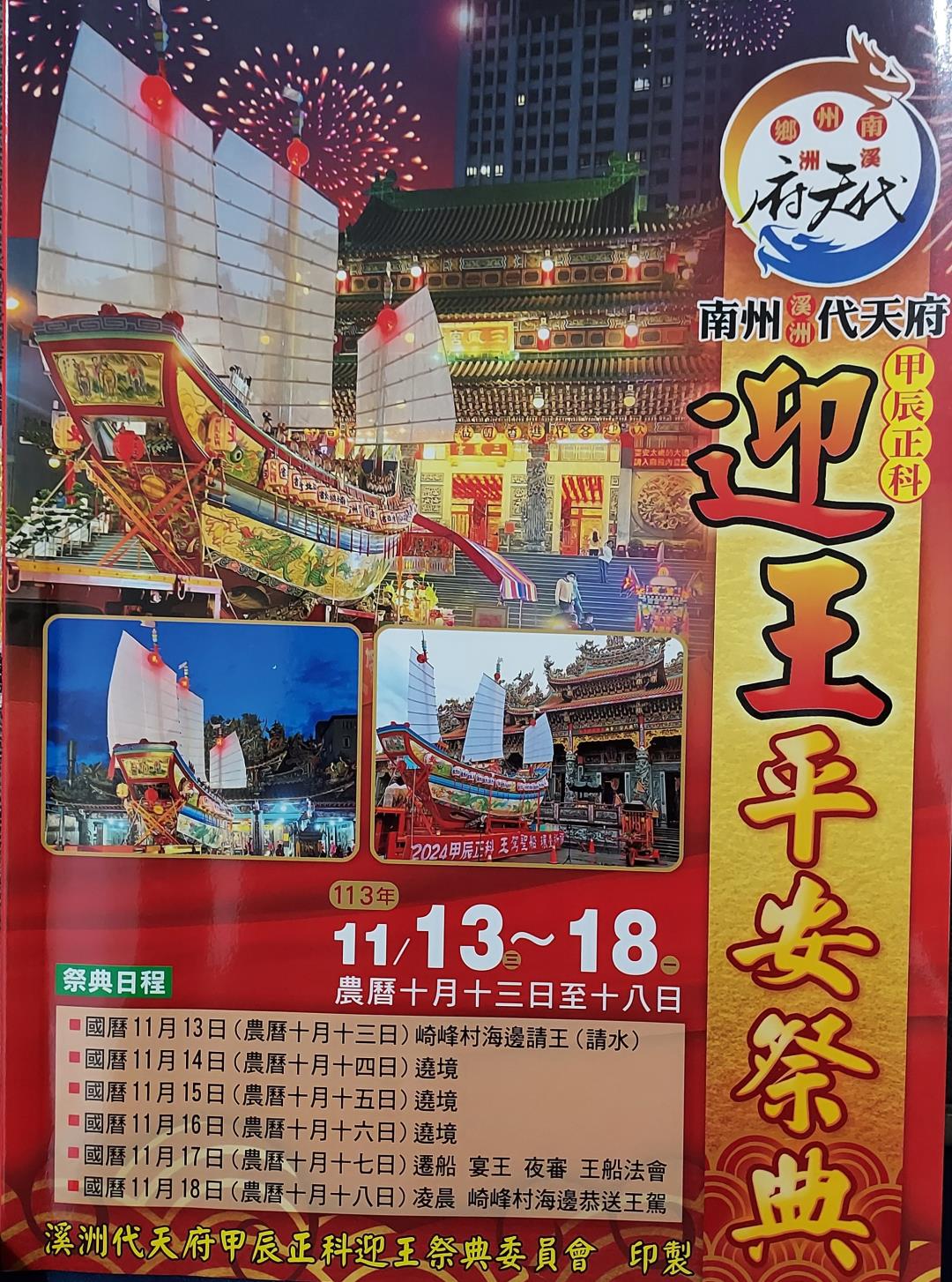 甲辰正科迎王平安祭典於國曆11月13日至11月18日止